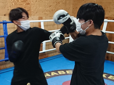 選手コース。試合に出る出ないに関係なく、パンチや蹴りを基本からきちんと学べます!プロを目指す方はもちろん、「キックボクシングはしたいけれど仕事柄ケガはできない、痛いスパーリング練習をしたくない、趣味で始めたい」という方でもオッケー。